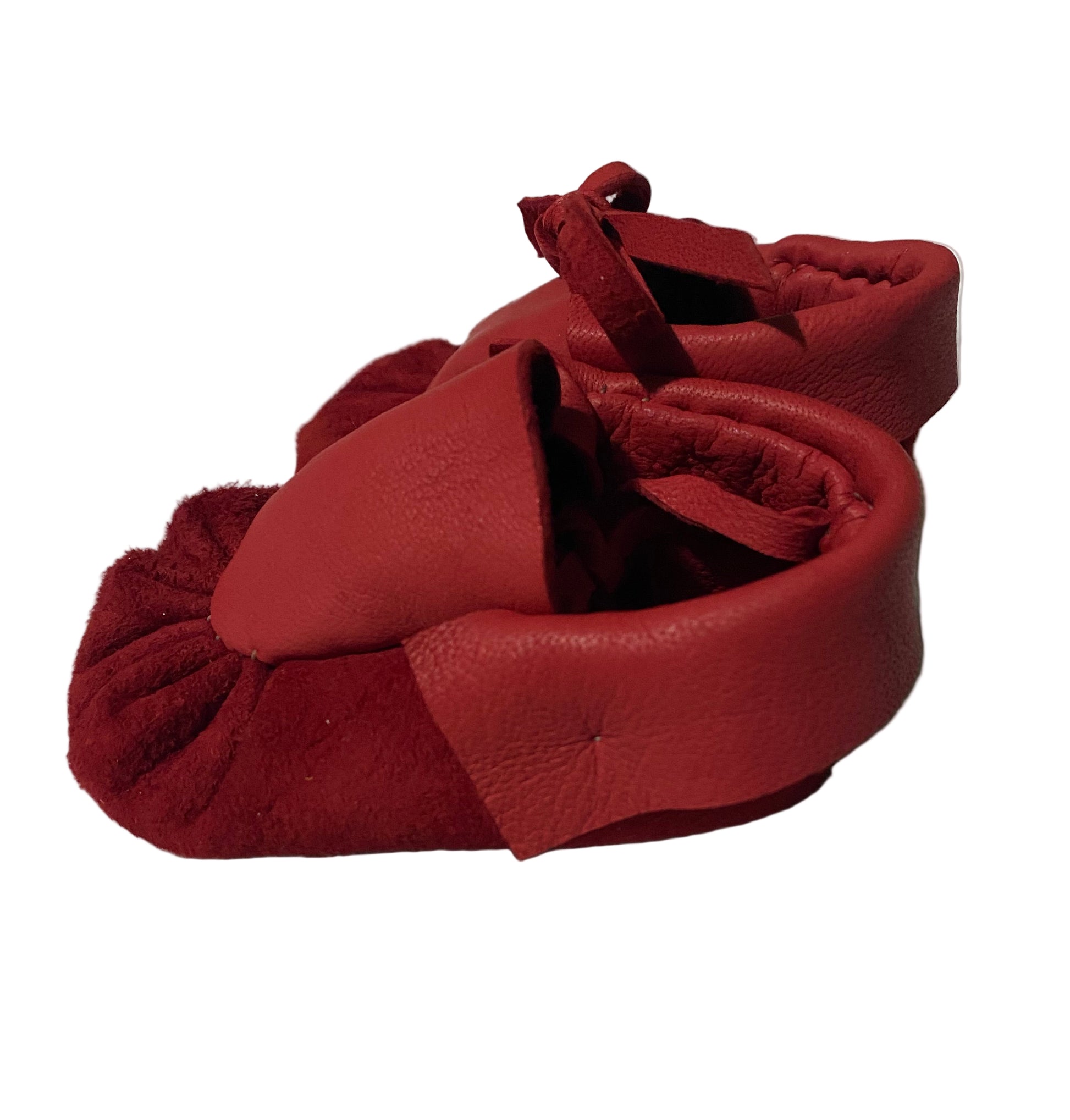 Expertly crafted with love by TRF, these Red Baby Mocs are a one-of-a-kind addition to your little one's wardrobe. Each pair is lovingly handmade, ensuring both quality and comfort for your baby. Give your child the gift of unique, handmade footwear.